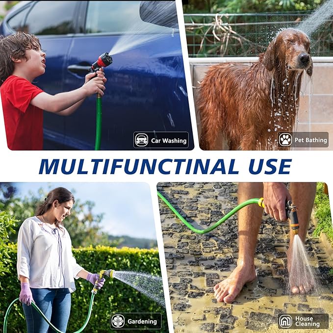 - The Perfect Fit for Outdoor Works: With a 5/8'' diameter, our garden hose offers the ideal balance between water flow and pressure. Whether you're nourishing your flourishing flower beds, maintaining a lawn, giving your car a wash, or indulging your pets in a playful shower, this water hose is your trusted companion for all your outdoor endeavors.
