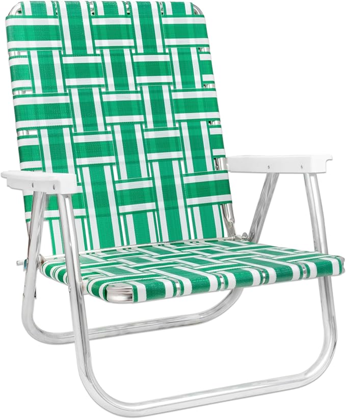 Lawn Chair USA Folding Aluminum Outdoor Patio Lawn Chair | Heavy-Duty Webbed Chairs for Camping, Sports, Beach, Yard & Tailgating | Lightweight Portable | High Back Beach Chair- Green & White Stripe
