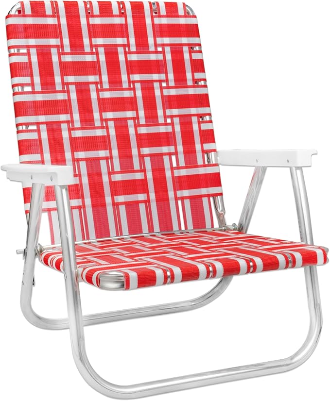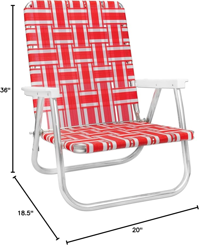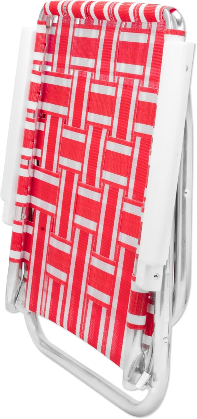 Lawn Chair USA Folding Aluminum Outdoor Patio Lawn Chair | Heavy-Duty Webbed Chairs for Camping, Sports, Beach, Yard & Tailgating | Lightweight Portable | High Back Beach Chair - Red & White Stripe