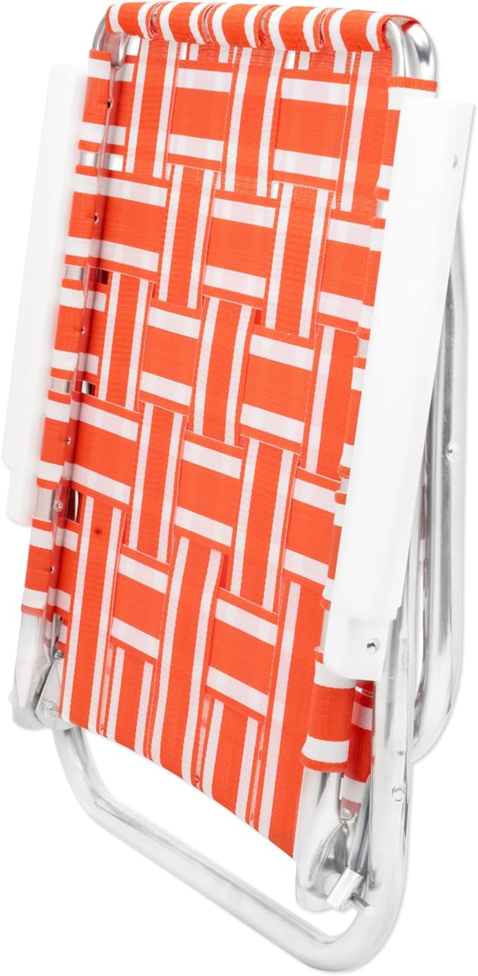 Lawn Chair USA Folding Aluminum Outdoor Patio Lawn Chair | Heavy-Duty Webbed Chairs for Camping, Sports, Beach Yard & Tailgating | Lightweight Portable | High Back Beach Chair- Orange & White Stripe