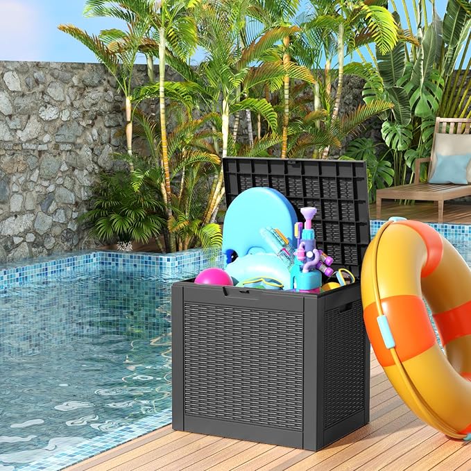 - Weatherproof material: This deck box is made of environmentally friendly polymer resin. It has better water and UV resistance than traditional wood. There is no need to worry about it fading and falling off in the coming years. Years of virtually no maintenance are required.