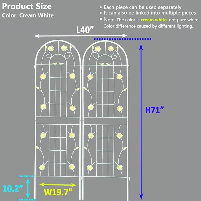 - Elegant Cream White Appearance: There are wire patterns on the garden trellises, which create the perfect surface for climbing plants or flower to grow with its delicate patterns.