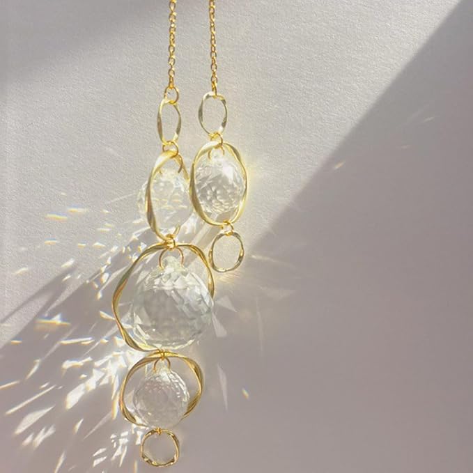 - 【High Quality Materials】Crystal catcher wind chimes are made of high-quality crystal and metal rings materials,waterproof and absorb sunlight, rain and sunlight not will damage it,You can hang it with confidence for decoration in gardens and outdoors.
