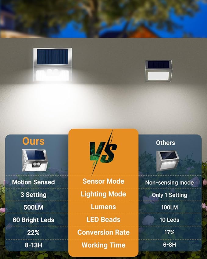 - Faster Charging-Longer Illumination:This solar motion activated light boasts a supercharged solar panel with a 20-22% conversion rate, meaning it charges up quicker during the day. That translates to longer illumination at night, keeping your outdoor space brightly lit for enhanced safety and security