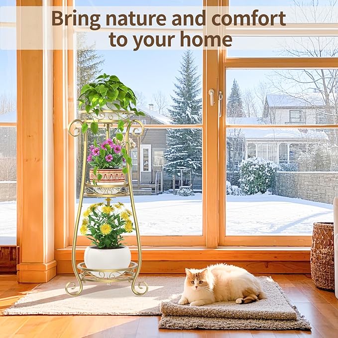 - 【Maximize Space Effortlessly】 Struggling with limited space? This 3 tier metal plant stand maximizes every inch of your living room, balcony, or narrow corner. Enjoy a clutter-free, organized space without sacrificing your love for plants.