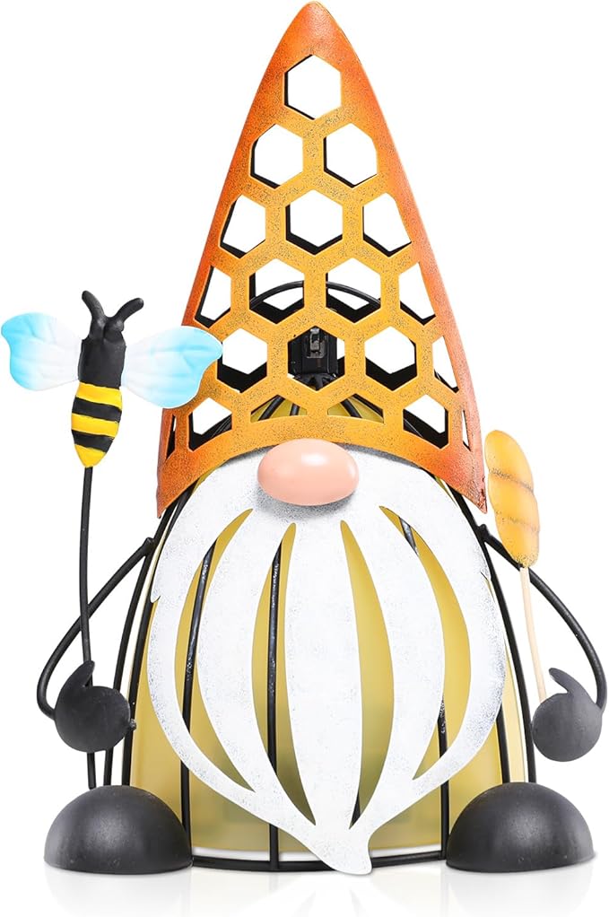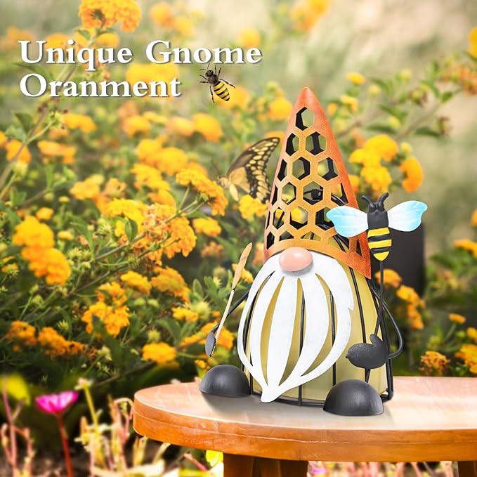 - Solar gnome garden decoraions is designed with a vivid funny gnome pattern and cute bee decorations, make this gnome solar light more cute and suitable for outdoor yard garden courtyard decorations