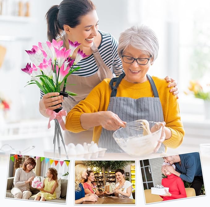 - 24 BLOOMING SOLAR LILIES: 6 pack outdoor solar garden lights have 24 blooming bigger lily flowers come in 3 colors: purple, pink, and white. The lily flowers made of fine processed fabric, stems and leaves are propped up by iron wire, you can move the stems on them to whatever position you want them in. When night falls, these solar garden lights can light up your garden and create a dreamy atmosphere.