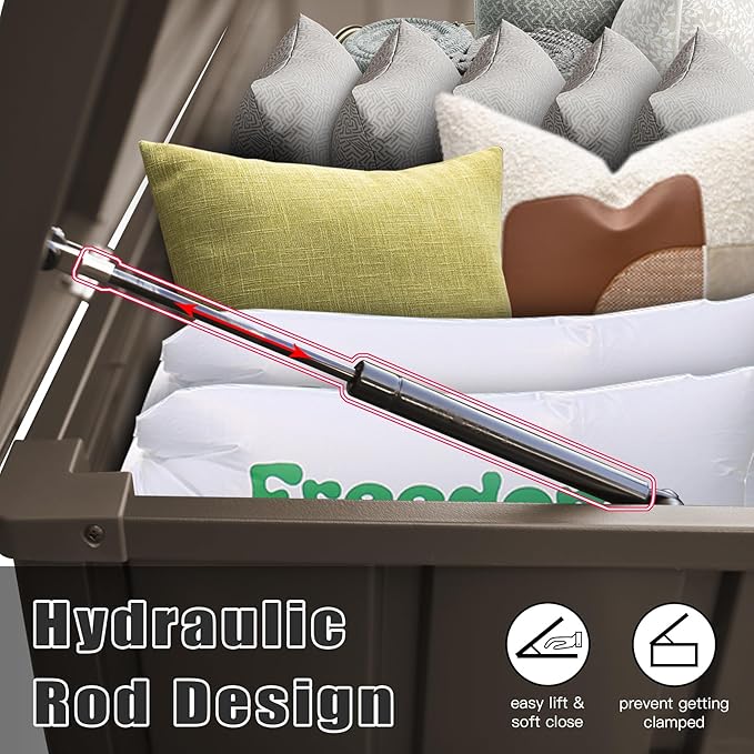 - 🌞【Humanized Hydraulic Pistons】: Easy lift and soft close mechanism allows the top completely open and shut smoothly with minimal effort-easy to use and no smashed fingers.