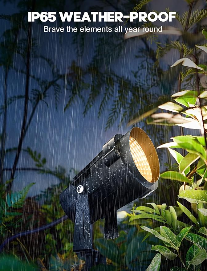 - γ2024 Upgraded IP65 Waterproof Landscape LightsγSay goodbye to constant replacements with our new Landscape Lights. Equipped with cutting-edge waterproof technology, these landscape Lights spotlights ensure stable illumination for your outdoor space, even in the harshest weather conditions, providing a consistent ambiance for your yard.