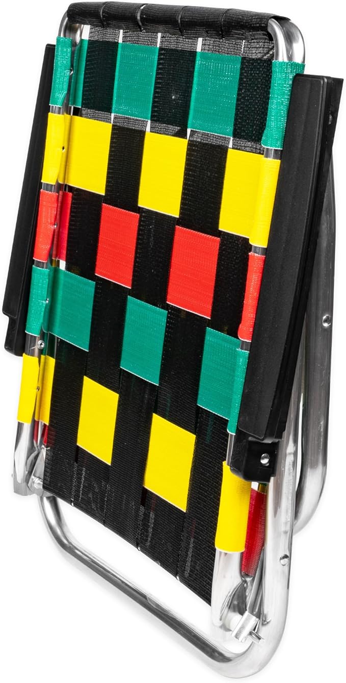 Lawn Chair USA Folding Aluminum Outdoor Patio Lawn Chair | Heavy-Duty Webbed Chairs for Camping, Sports, Beach, Yard & Tailgating | Lightweight Portable | High Back Beach Chair - Rasta Flag