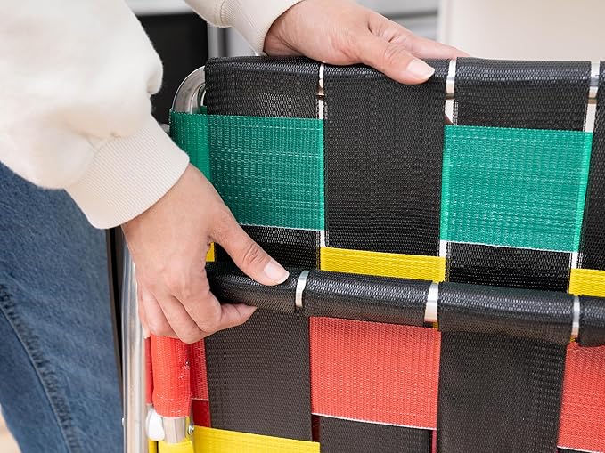- Handmade In The USA: Our chair features hand-woven straps with a mechanical stitch for superior durability and an authentic handmade feel. Made with a sturdy aluminum frame, copolymer arms, and polypropylene webbing, ensuring long-lasting use and reliability