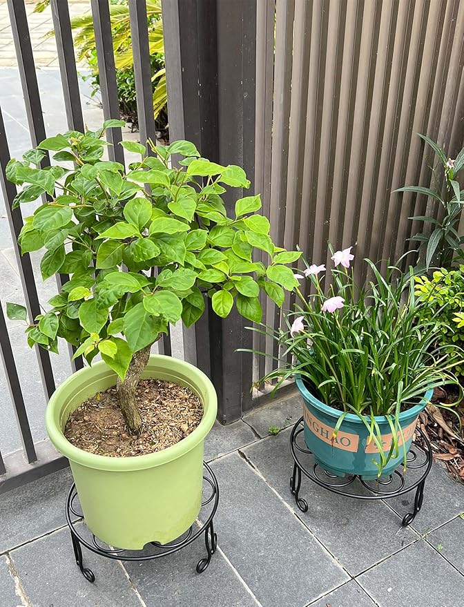 2 Pack 13'' Diameter Metal Plant Stand for Large Plant/Flower Pot Heavy Duty Potted Holder Indoor Outdoor Rustproof Iron Display Stand,Black