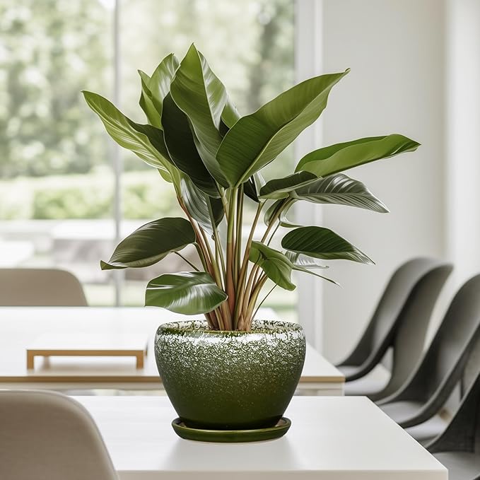 - Drainage Hole and Saucer: There is a drainage hole at the bottom of the garden pot, which can discharge excess water and benefit the growth of plants; the lightweight ceramic saucer can not only keep your desktop clean, but also convenient your movement