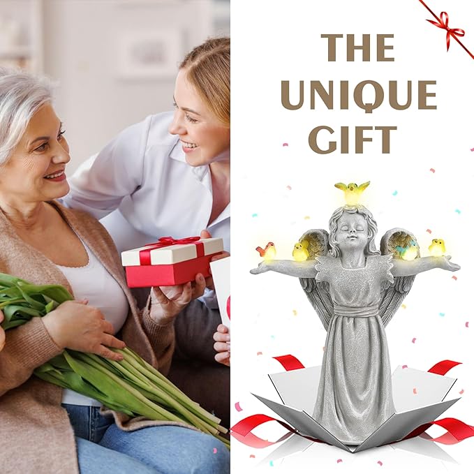 - Sturdy & Waterproof: The angel garden statue crafted of safety resin for waterproof and UV resistant. The colorful birds finished with protect coating for long-lasting color does not fade.