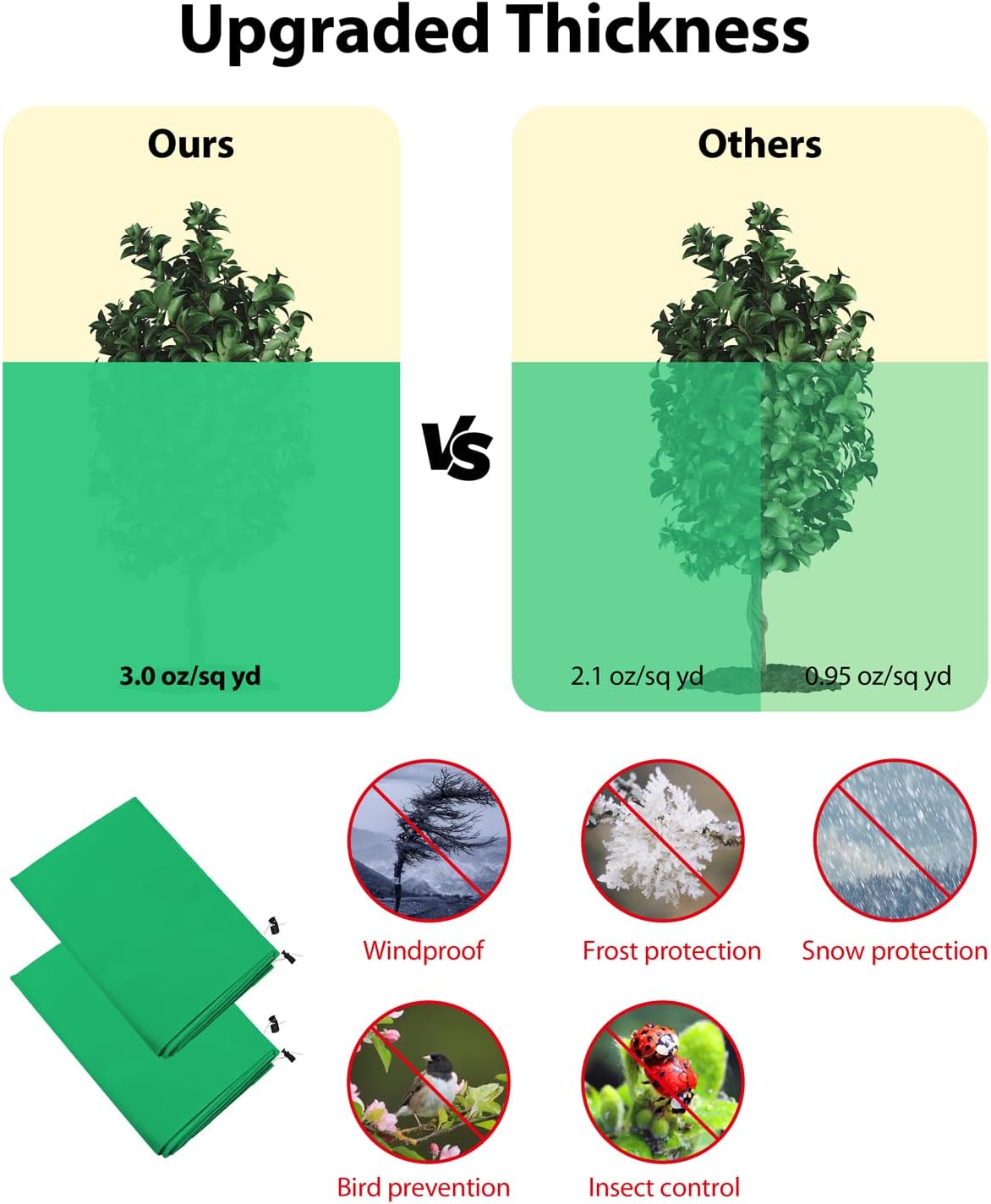 - [Upgrade 3 OZ/YD² Non-Woven Fabric] : Our freeze protection covers are made of 3 oz/yd² non-woven fabric which is high strength, flexible, breathable and waterproof. So it gives better frost protection to your plants from bad weather, such as cold, heavy wind, frost.