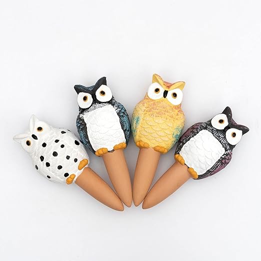 4 Pack Terra Cotta Watering Spikes, Owl Shape Terracotta Watering Spike, Vacation Self Watering Planter Insert, Automatic Plant Waterer for Indoor Outdoor Plants