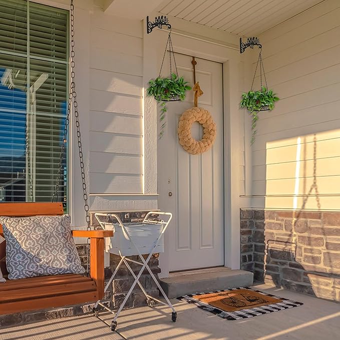 - STURDY AND ANTI-RUST: Crafted from heavy-duty iron, our 10-inch hanging plant bracket features a 2 mm thick body, can hold up to 30 lb. The specialized anti-rust coating ensures long-lasting durability, making it ideal for both window plant hanger indoor and plant hangers outdoor