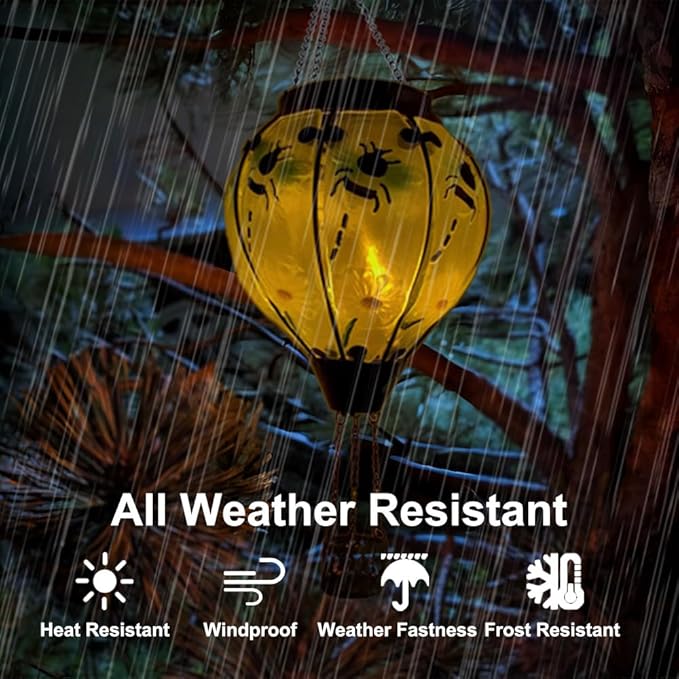 - Weather Resistance: The IP44 waterproof hanging solar lantern can adapt to various weather conditions it can can be used indoors or outdoors; Outdoor solar lantern is 5.5" W *18" H; Its metal parts have a protective coating and are not easy to rust
