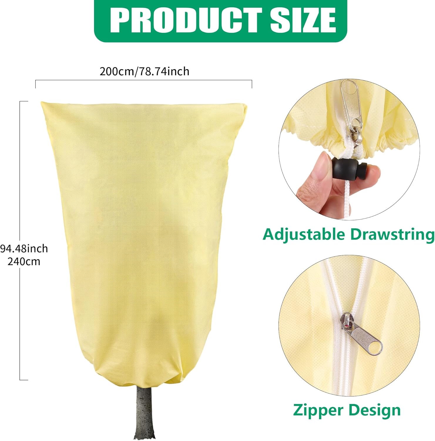 Plant Covers Freeze Protection, 1 Pack 78''× 95'' Beige Frost Cloths Blankets with Zipper Drawstring Shrub Tree Covers for Winter Outdoor Plants Freeze Protection
