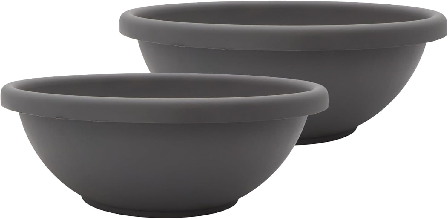 The HC Companies Shallow Planter with Drainage - Contemporary Garden Bowl Planter for Flowers, Herbs & More - Round Succulent Planter Pot for Indoors and Outdoors (13" Warm Gray, Pack of 2)