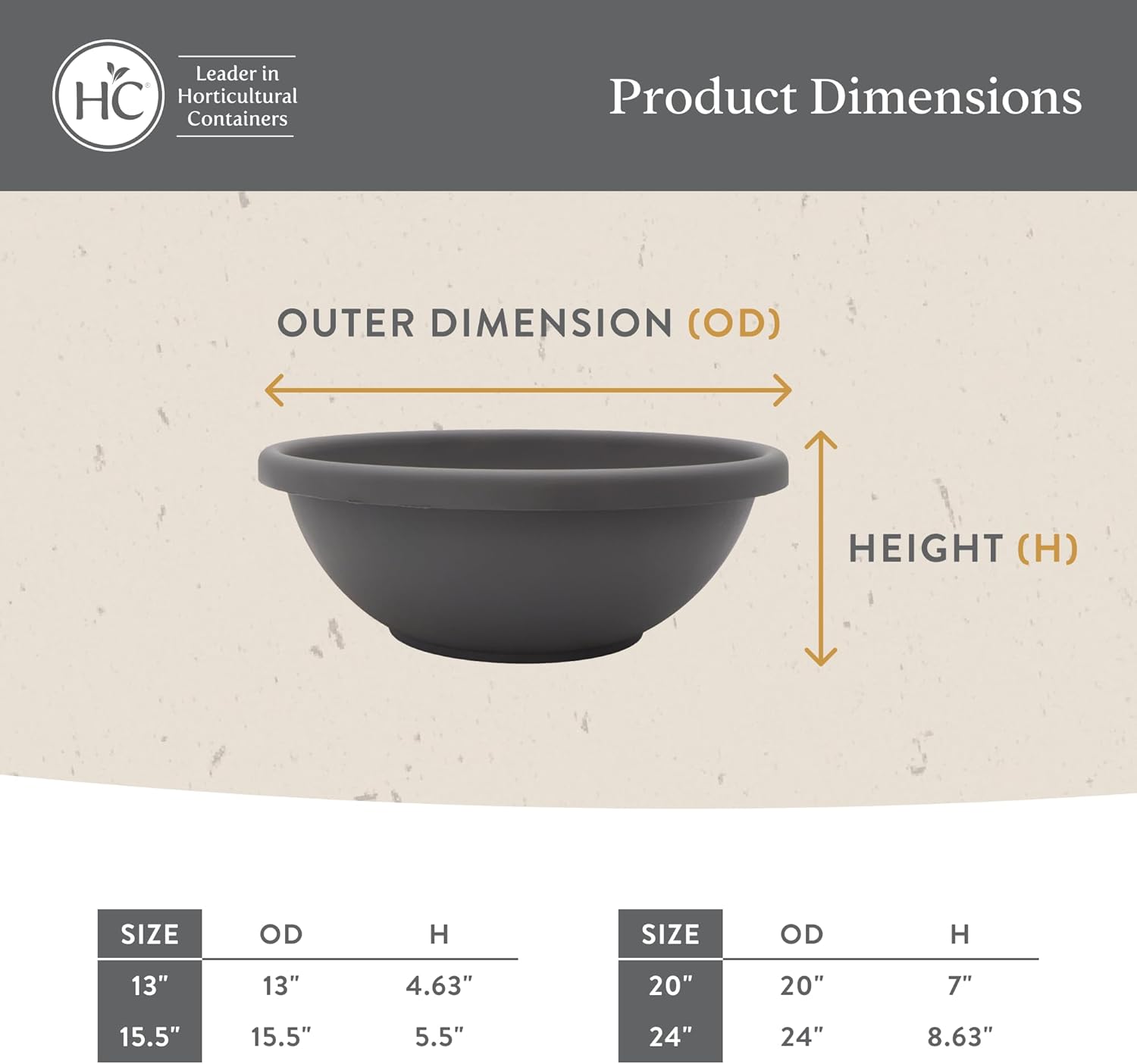 The HC Companies Shallow Planter with Drainage - Contemporary Garden Bowl Planter for Flowers, Herbs & More - Round Succulent Planter Pot for Indoors and Outdoors (15.5" Warm Gray, Pack of 2)