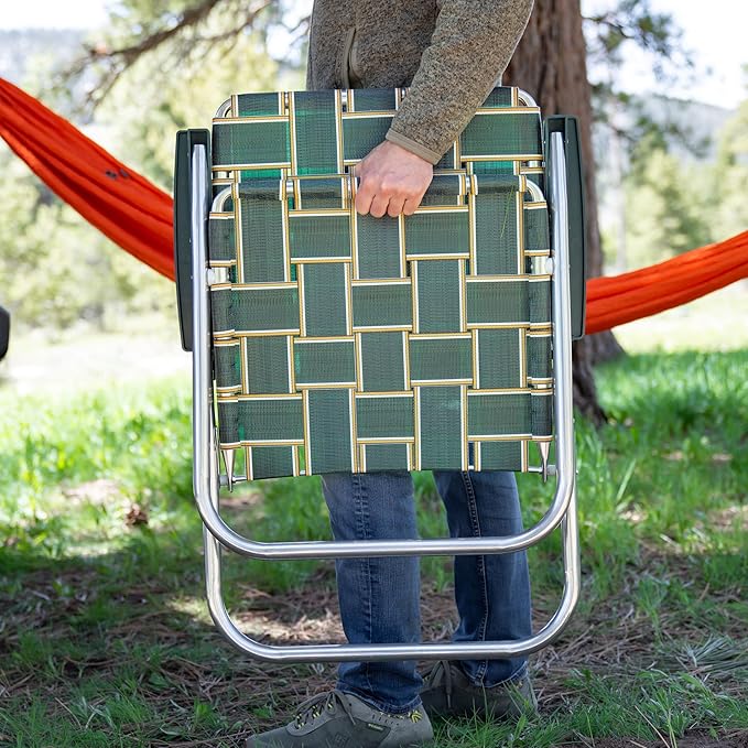 Lawn Chair USA Folding Aluminum Outdoor Patio Lawn Chair | Heavy-Duty Webbed Chairs for Camping, Sports, Beach, Yard & Tailgating | Lightweight Portable | Classic - Charleston Green with Green Arms