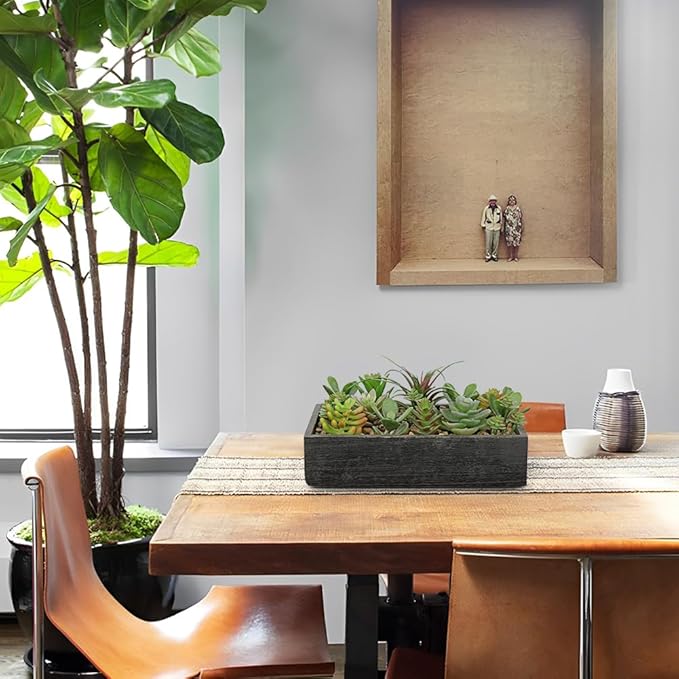 - Premium Material Design: Features high-quality polyethylene artificial succulents rooted in a sturdy rectangular wooden pot, topped with decorative pebbles for an authentic touch. The durable construction ensures stability while adding organic warmth to any space