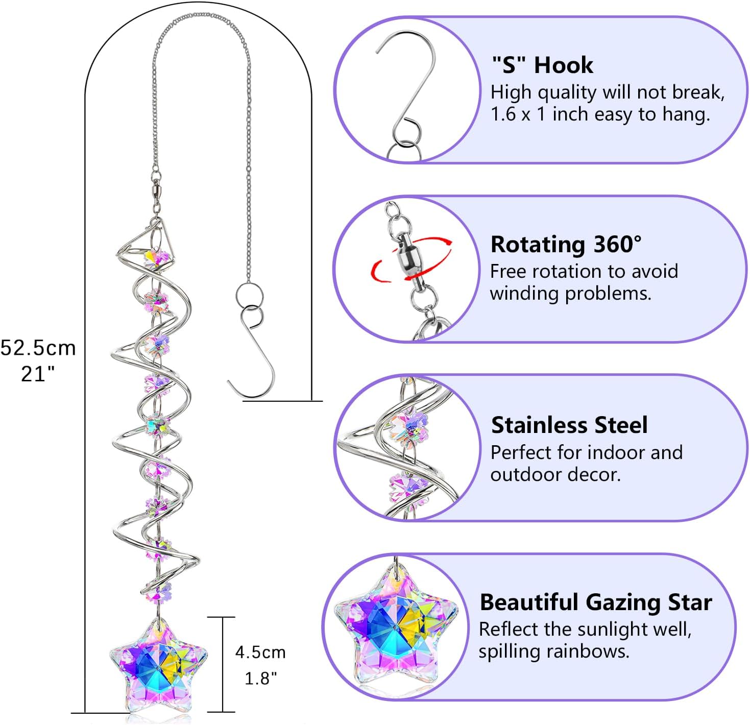 - Durable Construction: Suncatcher wind spinner made from high-quality stainless steel, promised good weather resistant and amazing decoration, ensuring long-lasting beauty and durability.Upgraded design with free-spinning chain link connector, can rotate in two directions