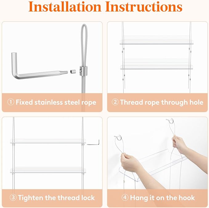 - Stable Thread Lock: Utilizing a threaded lock and requiring a hex key for tightening, this hanging plant shelf offers stability and prevents tipping. Made of transparent plastic, promoting optimal indoor growing conditions for your plants