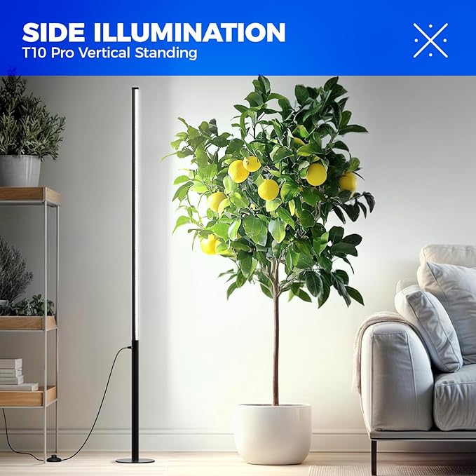 - Sleek & Stylish Design: The vertical grow light showcases a minimalist design, featuring T10 side-lighting for wide coverage.The specific upright design of the plant stand provides a wide illumination coverage area to grow large and lush plants