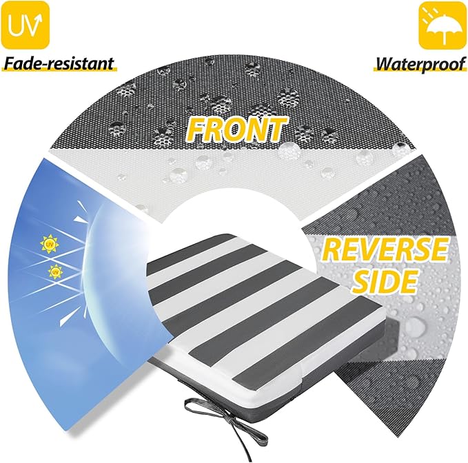 - Wide Use & Tips: These outdoor dining chair cushions fit pools, patios, balconies, decks, backyards, and gazebos. Foam inserts and covers are packed separately in bags and placed in one box—check all parts. Easy assembly required