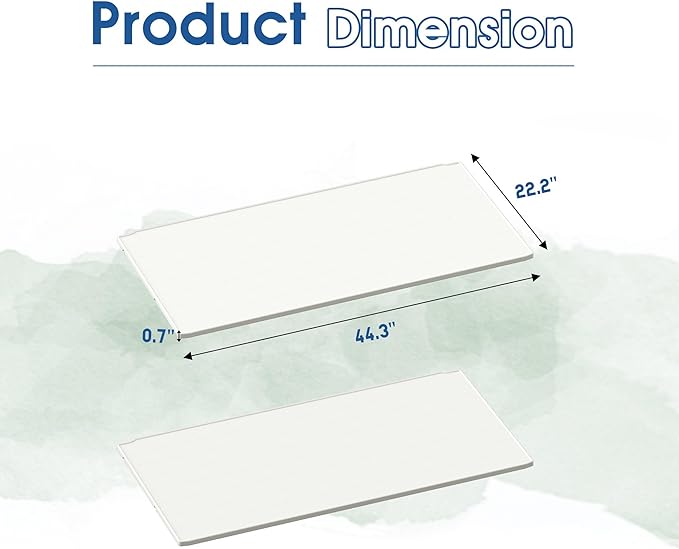 - One shelf size: 44.3"D x 22.2"W x 0.7"H