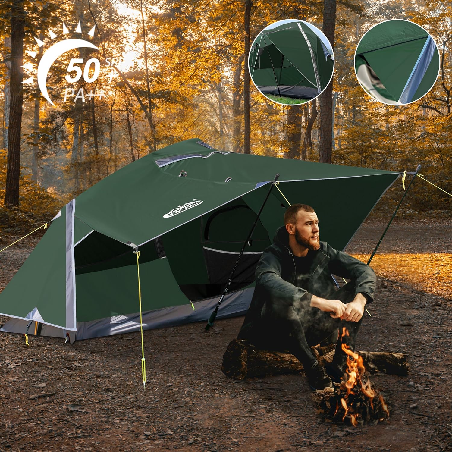 - 【Spacious & Comfortable Interior】Despite its compact size, this one man tent offers a spacious interior. With a unique pole design, it maximizes usable space at the top, ensuring comfort while you're inside. The inner tent measures 7.38ft x 3.14ft x 3.74ft, outer tent measures 8.26ft x 4.92ft x 4.1ft, providing plenty of room for personal gear. It's the perfect hiking tent for solo travelers who don’t want to compromise on comfort.