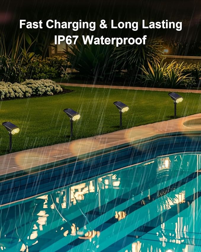 - ๐ท๐๐ง๐ฌ๐ฎ๐ซ๐ข๐ง๐ ๐๐๐๐ฎ๐ซ๐ ๐๐ง๐ ๐๐๐ฅ๐๐จ๐ฆ๐ข๐ง๐ ๐๐ง๐ฏ๐ข๐ซ๐จ๐ง๐ฆ๐๐ง๐ญ๐ฌ๏ผOur solar powered spotlights are versatile for a variety of settings, serving as general outdoor lighting to provide a safe and comfortable night for your yard, garden, porch, pathways, and driveway. They also offer accent lighting for specific areas or objects like trees, plants, outdoor, pools. These solar spot led lights can also highlight particular elements during Halloween and Christmas, creating visually appealing festive atmospheres.