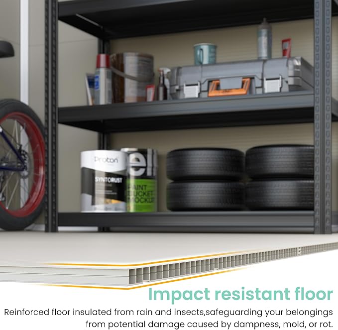 - DOUBLE-WALL CONSTRUCTION: Steel-reinforced dual-wall and an impact-resistant floor are designed for long-term durability, anti-insect, anti-corrosion, and better waterproof effect. (Maximum Wind resistant grade: 6 (24-30 mph); Maximum snow thickness tolerance: 6 inches)