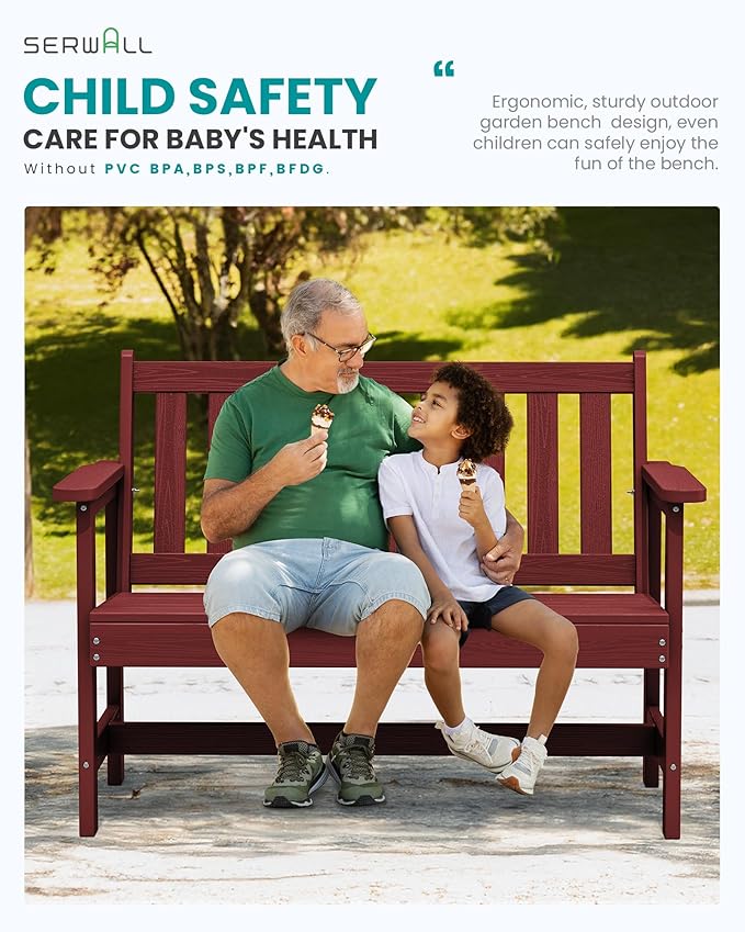 SERWALL Outdoor Bench, HDPE Outdoor Benches Weatherproof, 2-Person Garden Bench with 660 lbs Weight Capacity, Patio Benches for Outdoors, Garden, Porch, Backyard and Park, Red, 2 Pack