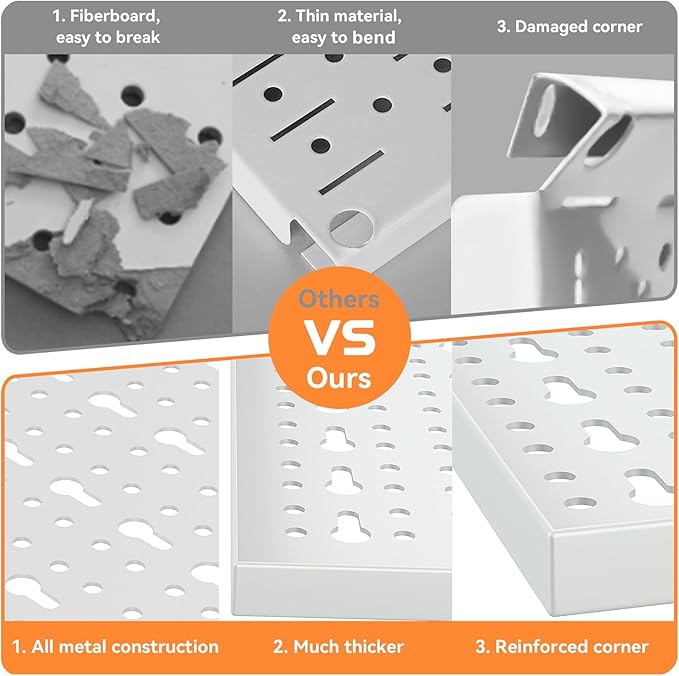 - Built to Last: The high quality steel pegboard has a powder coated finish that is sturdy, scratch resistant and easy to clean. It will never warp or deteriorate. A heavy-duty organizer built to last forever