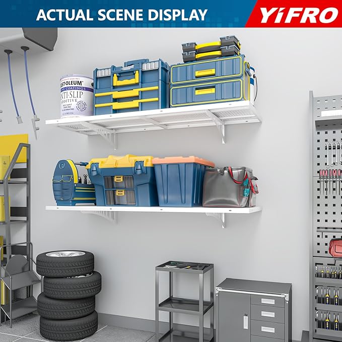 - ADJUSTABLE SPACING: YIFRO garage wall shelves is suitable for any wood post spacing, including standard 16'/18'/24'/32' spacing for installation.