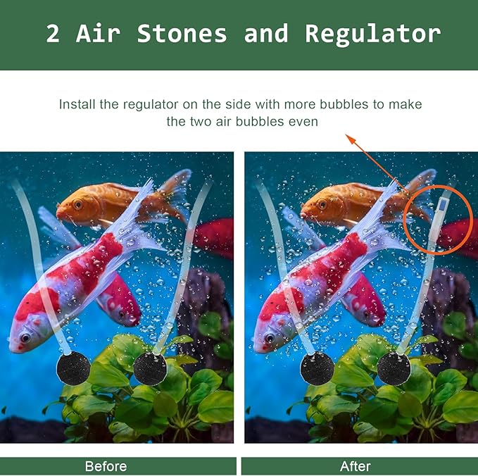 - Two Air Stones: Rather than 1 stone, two stones would really aerate a small pond or water feature very well