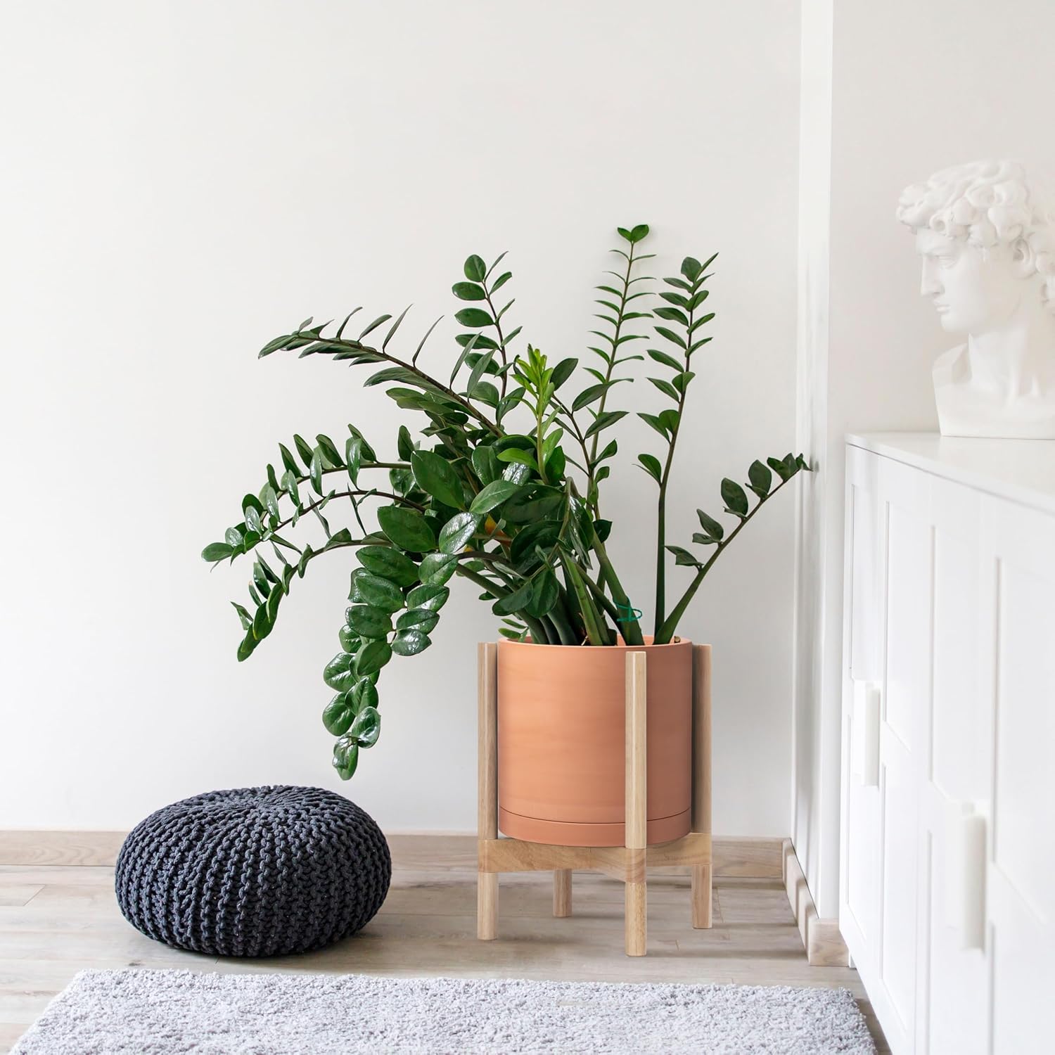 - A Complete Set: Mid-century terracotta planter, combined with a natural color, sculptural, solid wood stand that match perfectly together and looks great in anywhere.