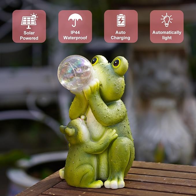 - 【Solar Powered】: The frog statue with solar bubble light that charges during the day and automatically turns on at night, creating a beautiful illuminated effect in your garden or yard to enhances the ambiance of your outdoor space