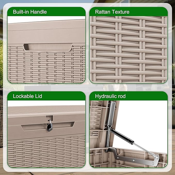 - ADAPTABLE TO VARIOUS SCENES: Whether used as an indoor laundry storage chest or an outdoor deck box container for items like outdoor cushions, garden tools, pool accessories, and this patio storage box provides abundant space. It's also versatile as a side table, yard seat, storage bench, or footrest