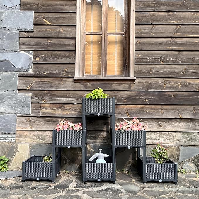 - Durable Structure: Made of reinforced plastic in rattan style, it’s lightweight yet sturdy for long-term use indoors or outdoors. The triangular setup gives the elevated garden bed great stability.