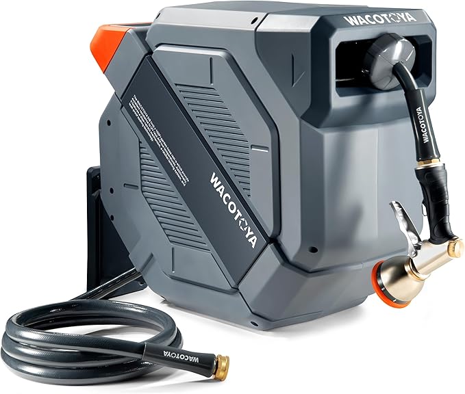 - Born for Irrigation: WACOTOYA engineers designed a gentle water pressure system for the auto rewind water hose reel to protect plants and ensure efficient irrigation with high flow rates