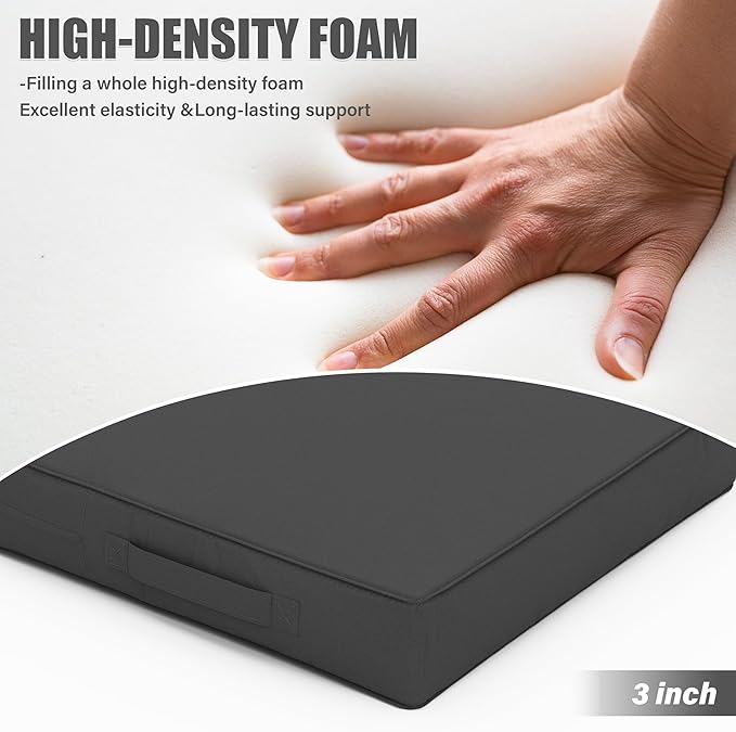 - π UPGRADED SUPPORT - Tounosnt's patio chair cushion is a full 3 inches thick, filled with premium 30D high resilience foam that is super comfortable and soft, with beyond-color resilient support and long-lasting recovery to give you the ultimate in comfort. When you use a seat, it is hard and at the same time, it can cause discomfort. While you use our outdoor chair cushion, it supports your hips and reduces the pressure points on your lower body, Enjoy long hours of relaxation.