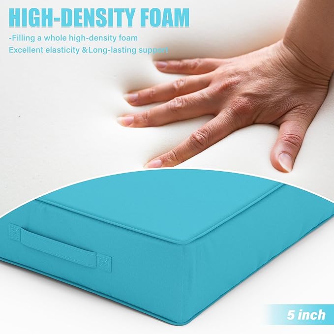 Patio Chair Cushions 24 X 24 X 5 Inch Waterproof Outdoor Seat Cushions for Patio Furniture, Outdoor Sofa Couch Pads with Ties & Handle, Set of 2, Lake Blue