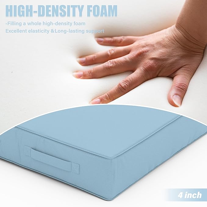 Patio Chair Cushions 19 X 19 X 4 Inch Waterproof Outdoor Seat Cushions for Patio Furniture, Outdoor Sofa Couch Pads with Ties & Handle, Set of 2, Light Blue