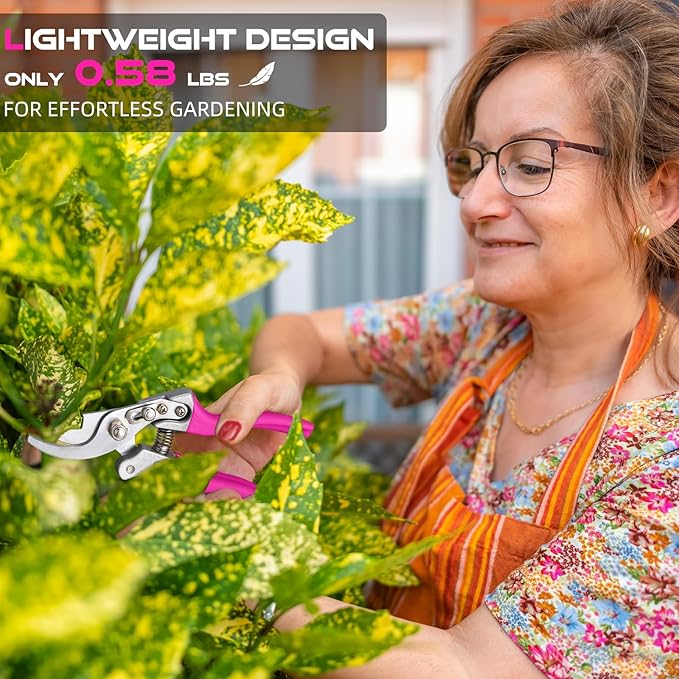 - FEMALE & ELDERLY-FRIENDLY: The ergonomically designed, non-slip rubber handles reduce hand fatigue and ensure a comfortable, stable grip. The cushioned design minimizes wrist and hand strain, making these pruners ideal for long use and for those with arthritis or anyone needing extra comfort