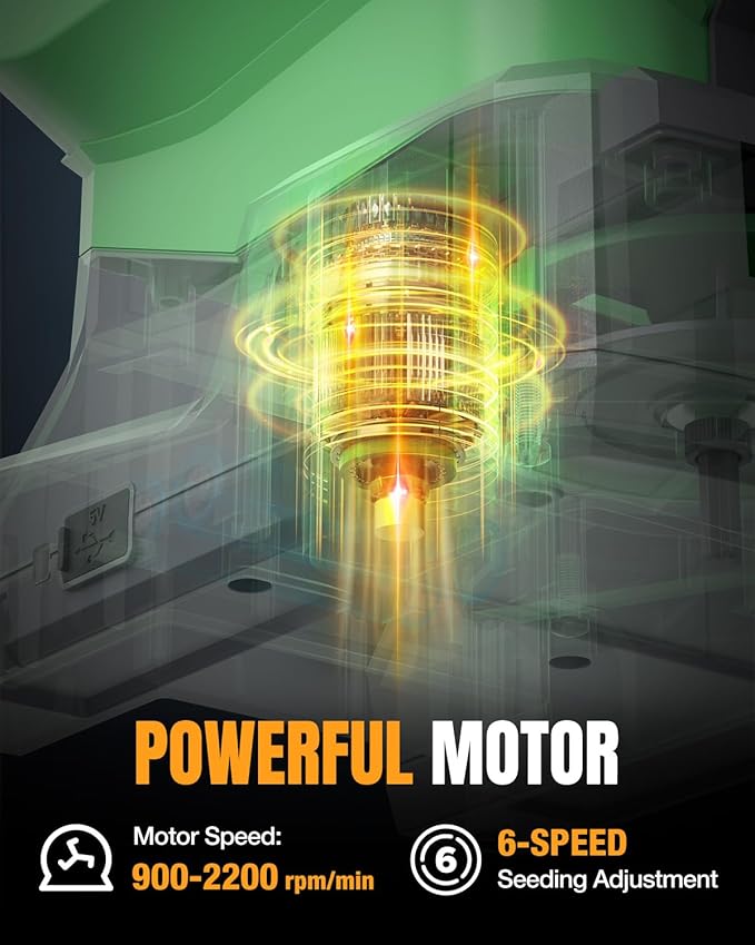 - High-Capacity Battery for Extended Use: This battery-powered seed spreader provides up to 2 hours of operation on a full charge. To extend battery life, recharge every 3-6 months. You will receive 1 USB charging cable, 1 seed spreader, and 24-hour customer support service
