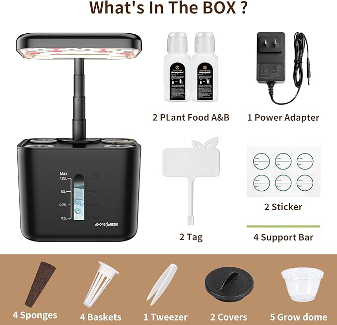 - Fast Growing: Ahopegarden indoor herb garden uses hydroponics and Grow lights to grow plants, resulting in a fast and simple growing process. Plants sprouted in our hydroponics growing system kit grow up to three times faster than plants grown using traditional gardening methods. With the ability to accommodate 4 20-inch plants, this indoor herb garden is a great pick for those who want to grow tomatoes, peppers, lettuce, herbs, and more. Watching greens grow from seeds is almost as fun as eating them.